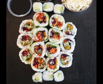 1 Salade de Choux – 6 California Veggie – 8 Spring Rolls Veggie – 6 Maki Avocat Fromage