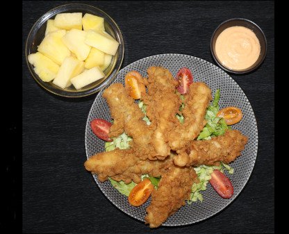6 Crispy Poulet – 1 coupe Ananas ou Mangue (selon arrivage) – 1 riz nature